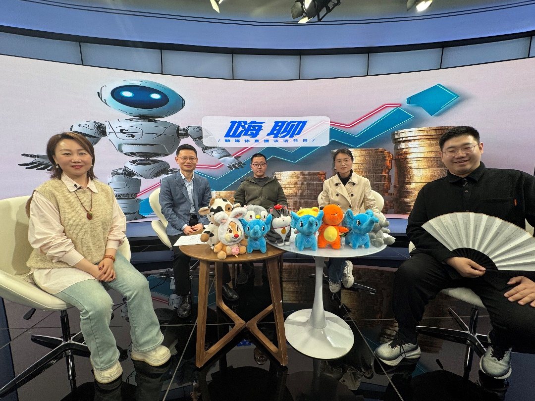 3月13日下午,我院教师徐国愚副教授、杨文君副教授与大一学生陈泉青同学,受邀参加河南广播电视台大象新闻中心精心打造的轻谈话沉浸式演绎节目《嗨聊》。此次节目以《嗨聊丨揭秘!AI赚钱的黄金赛道,新手也能月入过万?》为主题,聚焦当下热门的AI赚钱话题,节目播出后引发广泛关注,相关话题登上大象财富、金华网、虎嗅网及微博郑州热搜。