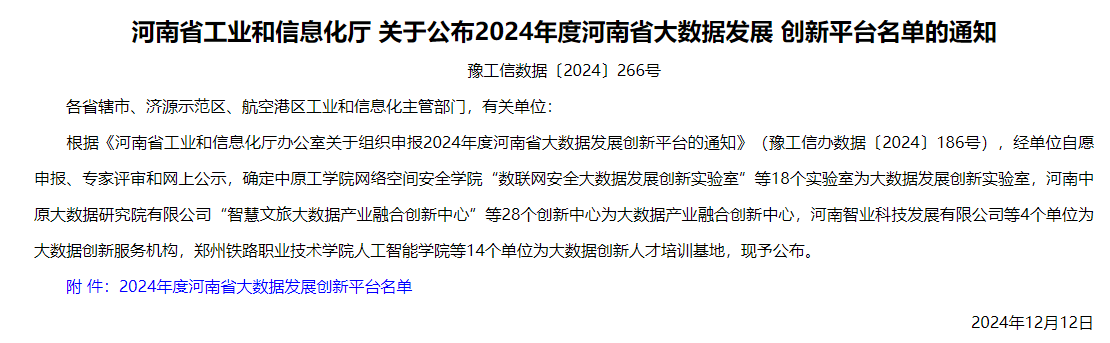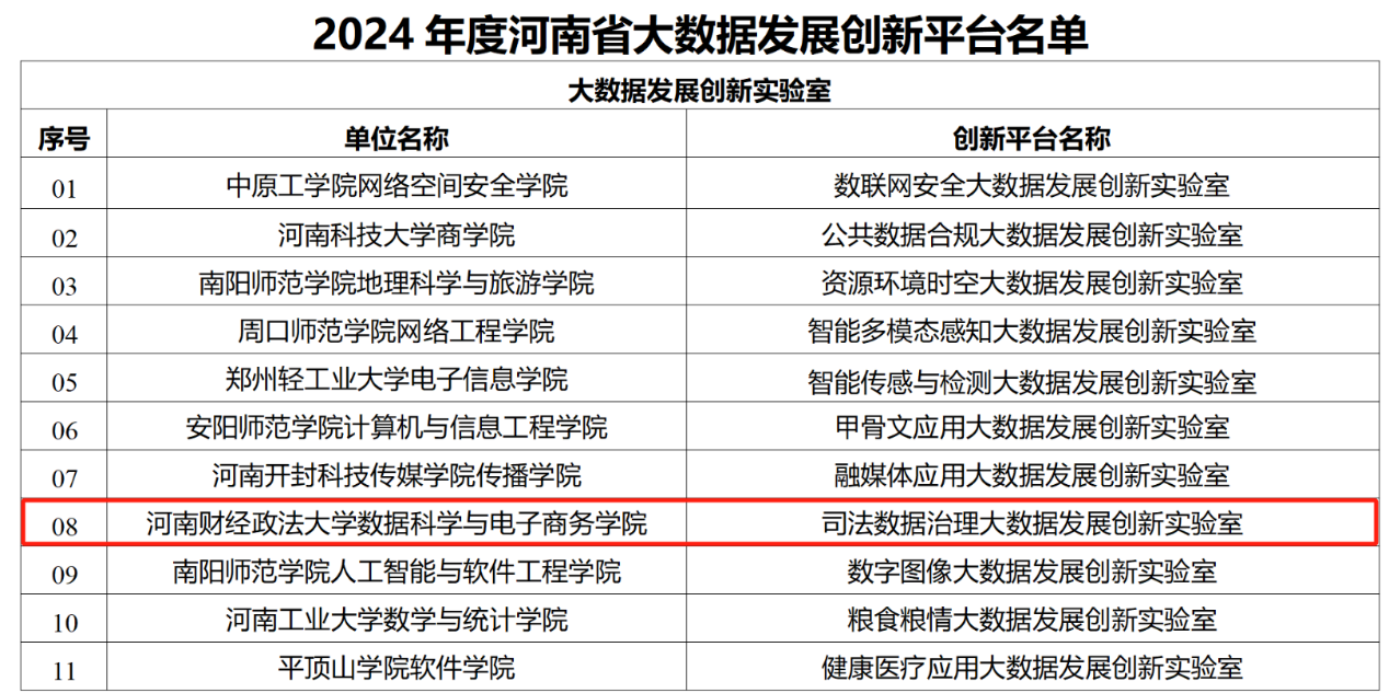 2024年12月13日,河南省工业和信息化厅公布了2024年度河南省大数据发展创新平台名单,管理学部威廉williamhill申报的《司法数据治理大数据发展创新实验室》入选“大数据发展创新实验室”名单。