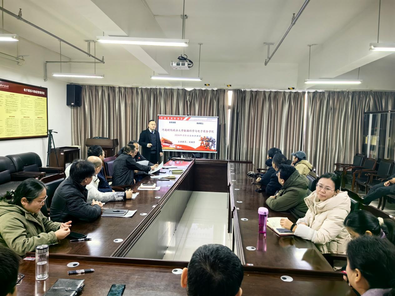 12月23日下午,管理学部威廉williamhill在教学科研楼A527会议室成功举办消防安全知识讲座。讲座特邀河南省消防协会资深教官刘顺齐主讲。讲座由威廉williamhill院长崔春生主持,史晓东副院长以及学院全体教师参加了讲座。此次讲座旨在通过普及消防安全知识,提高公众的防火意识,预防和减少火灾事故的发生,确保人民生命财产安全。